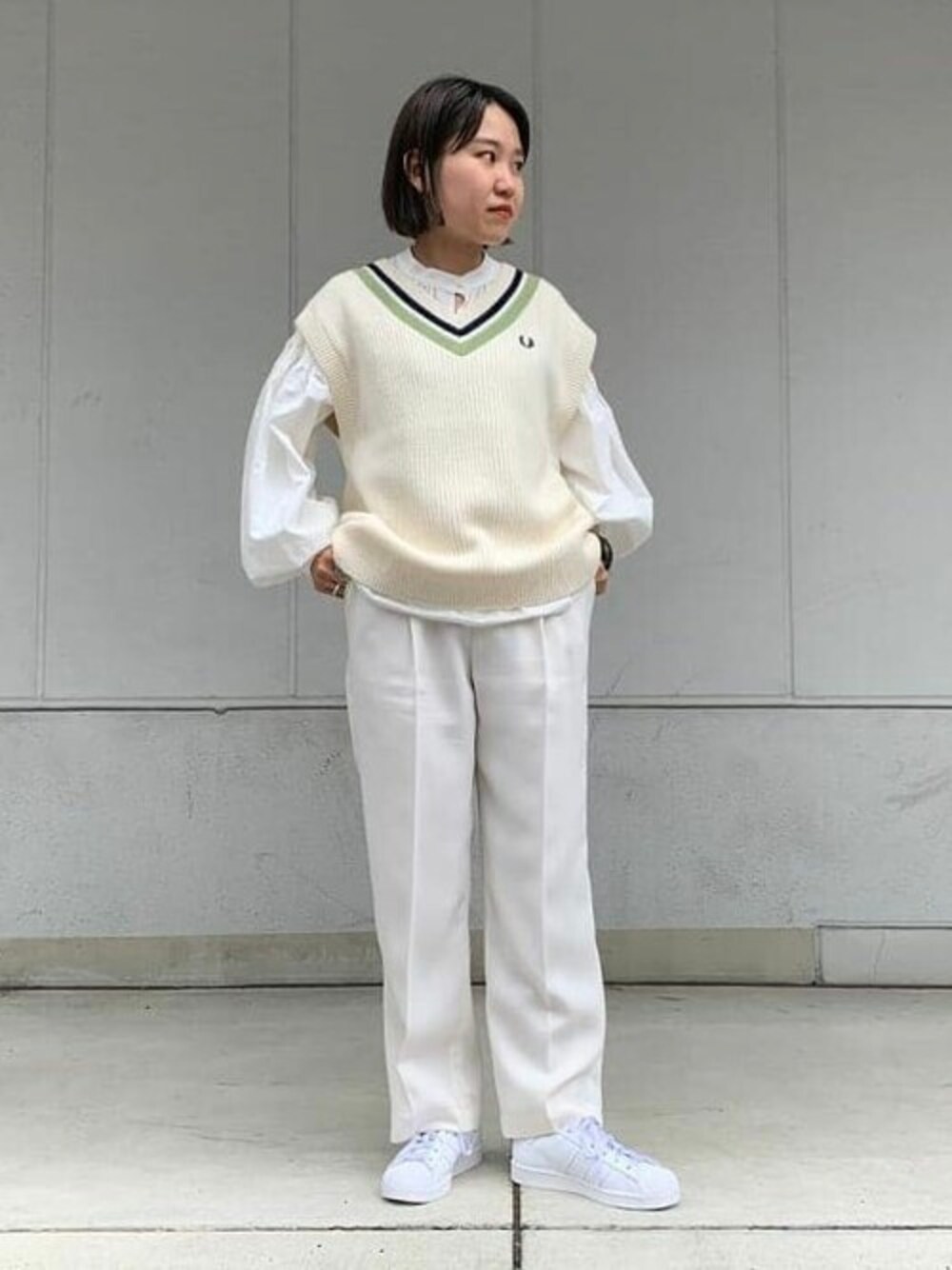 Ray BEAMS(BEAMS WOMEN)のベスト「FRED PERRY × Ray BEAMS / 別注 チルデン ニット ベスト」を使ったコーディネート