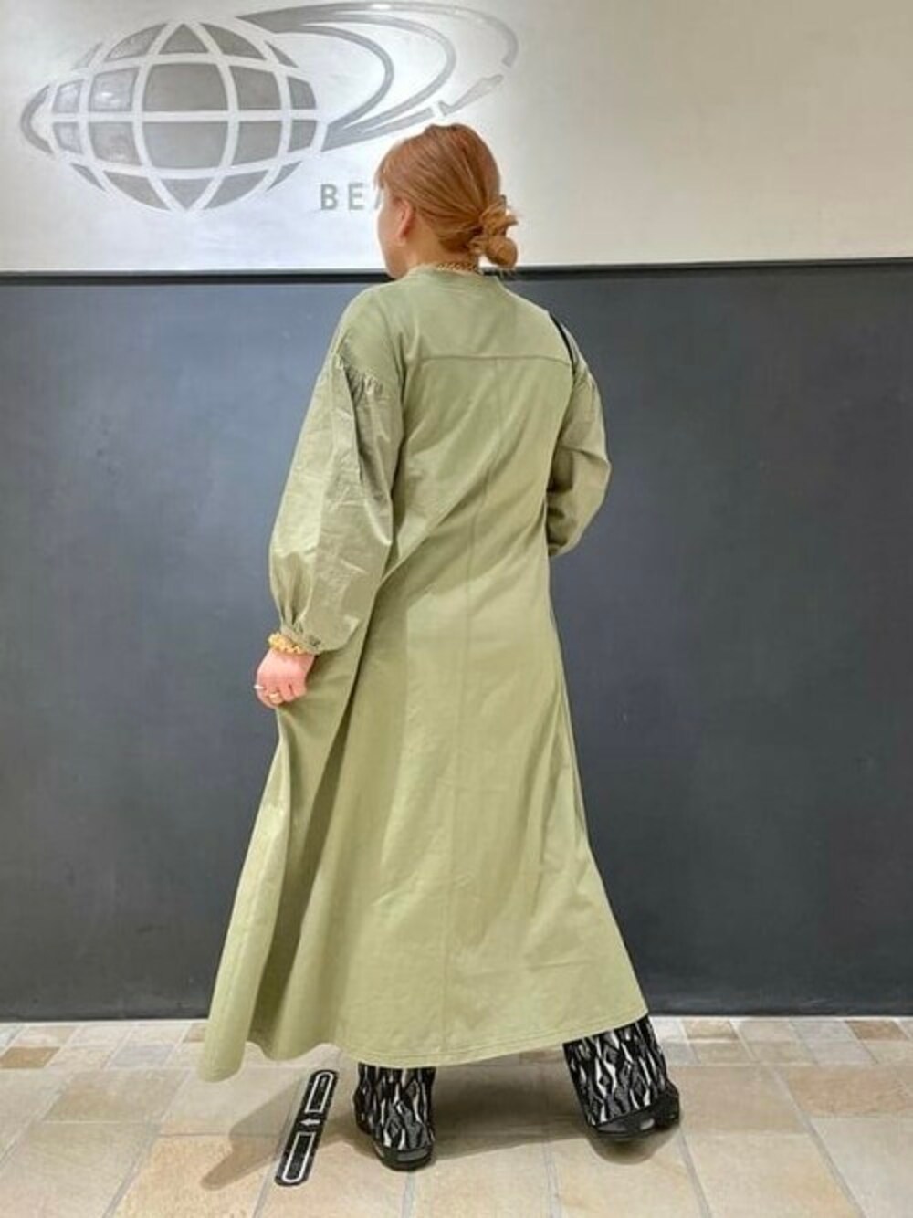ボリュームスリーブのワンピース! よく見るとボディとスリーブの素材が違うんです。カット素材なので、扱いやすいのもおすすめポイントです。