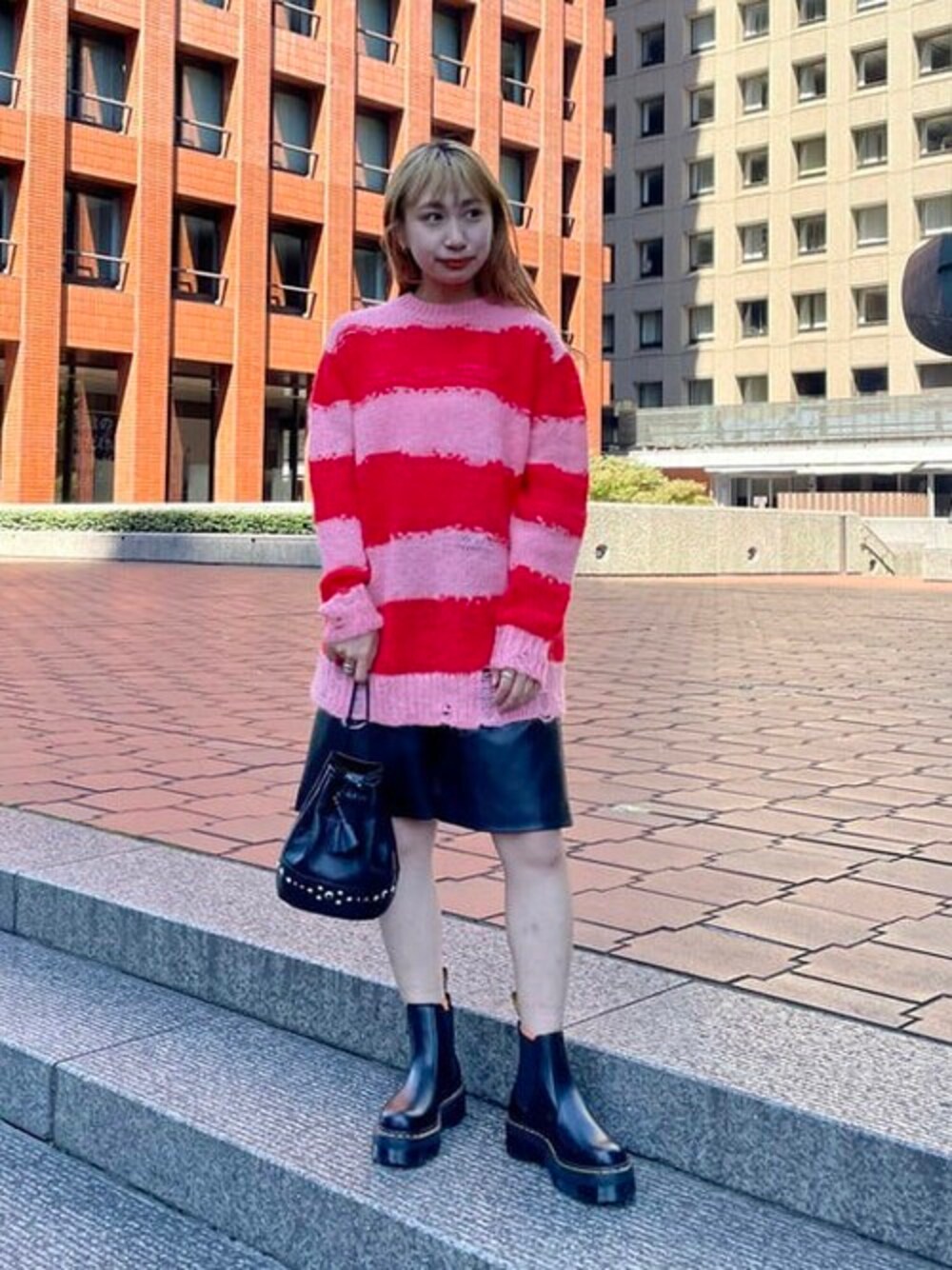 Ray BEAMS(BEAMS WOMEN)のショルダーバッグ「BEAURE × Ray BEAMS / 別注 スタッズ 巾着 バッグ」を使ったコーディネート