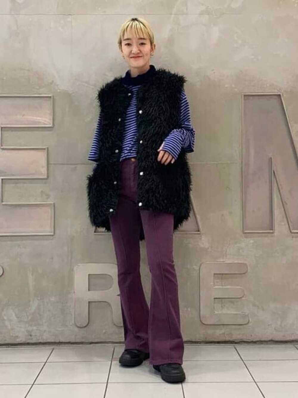 【河野お待たせしました!】Tシャツのシルエットが可愛すぎやありませんか!袖のゆったりした部分から手首周りはピタッと他にはないデザイン♡パンツもパープルとやはり色合わせが好きです。かーなーりストレッチ効いてるので是非お試しあれです⭐︎