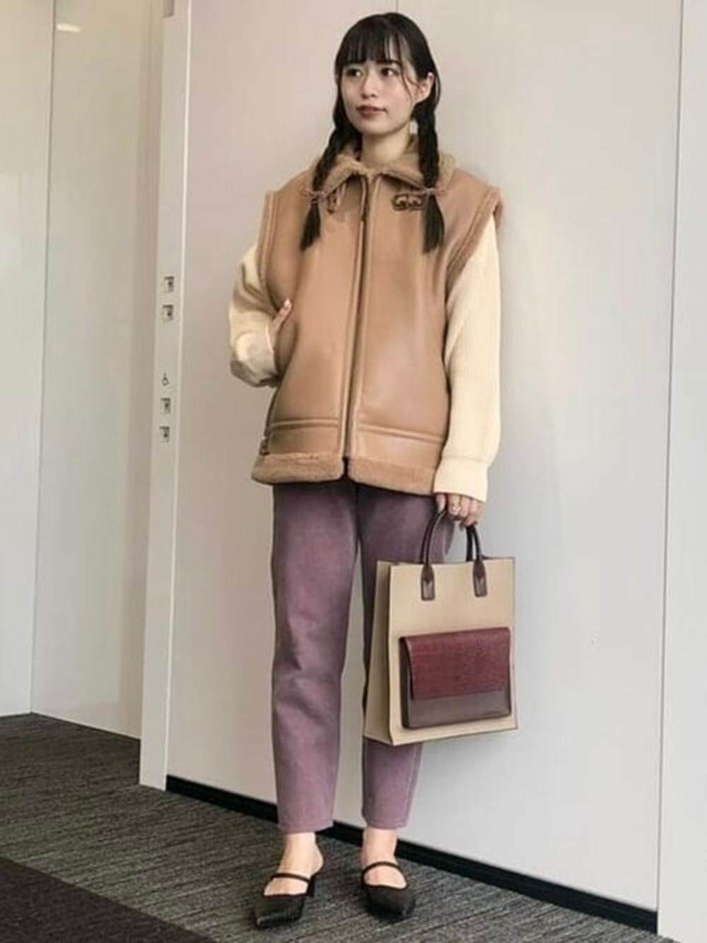 Ray BEAMS(BEAMS WOMEN)のベスト「Ray BEAMS / フェイクムートン ボマー ベスト」を使ったコーディネート