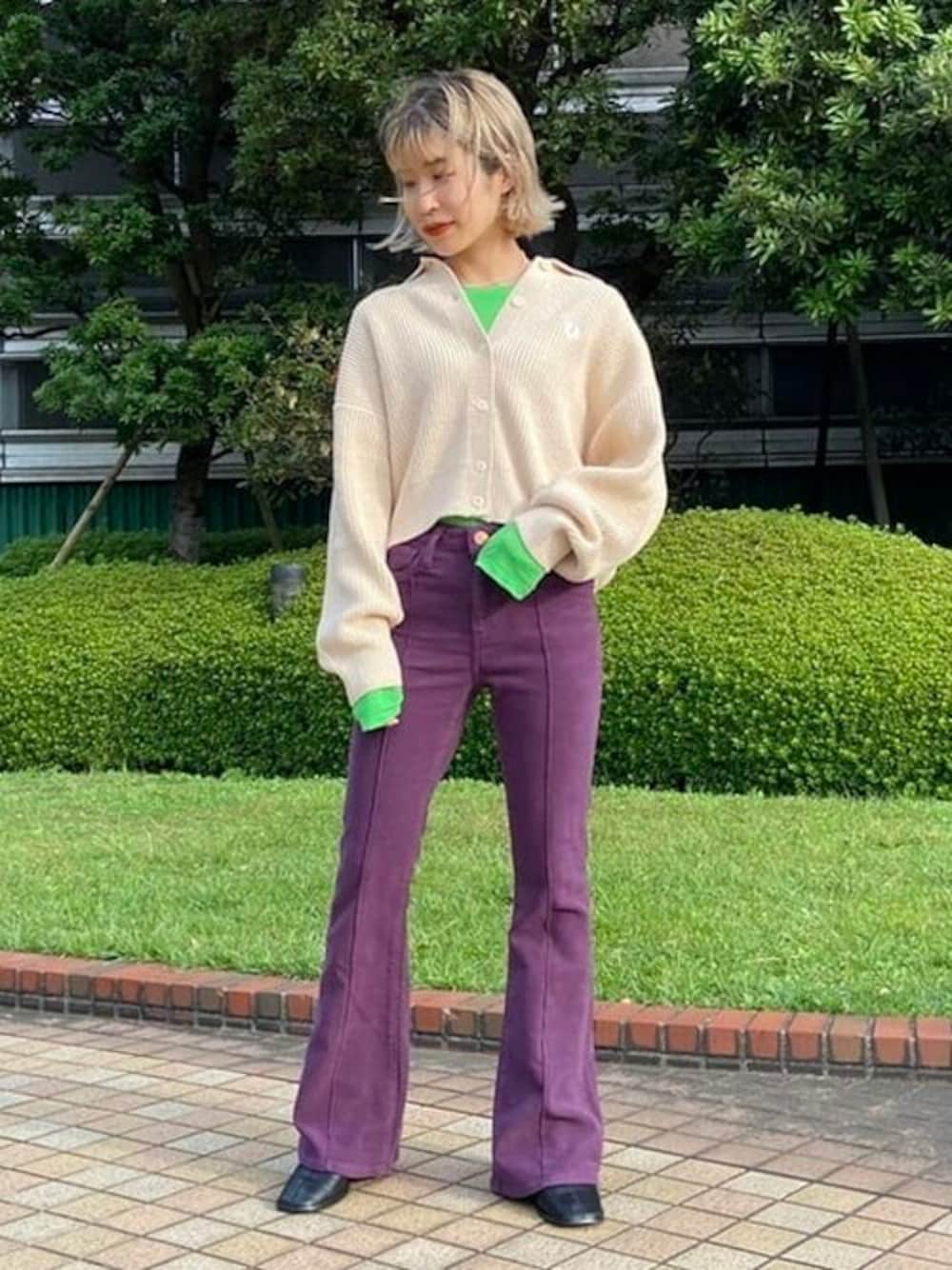Ray BEAMS(BEAMS WOMEN)のカーディガン/ボレロ「FRED PERRY × Ray BEAMS / 別注 ビッグカラー カーディガン」を使ったコーディネート