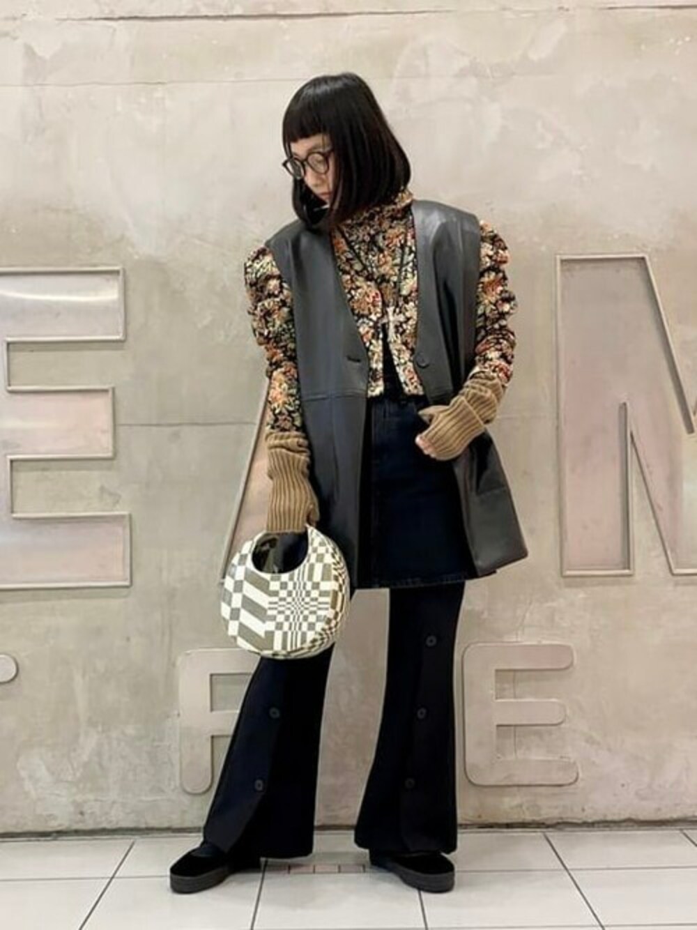 Ray BEAMS(BEAMS WOMEN)のハンドバッグ「Ray BEAMS / オプティカル スワイプ バッグ」を使ったコーディネート