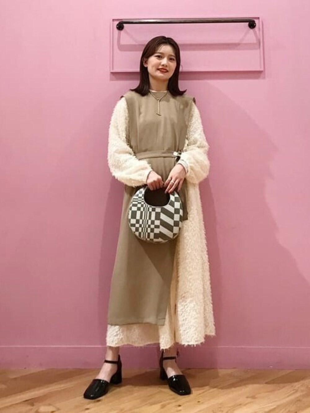バッグをアクセントにした綺麗めなスタイリングです!ふわふわっとした生地感のワンピースは前開きなので着回し力もありますよ◎気になるアイテムございましたらいつでも見返せる【お気に入り】をぜひご活用ください♪