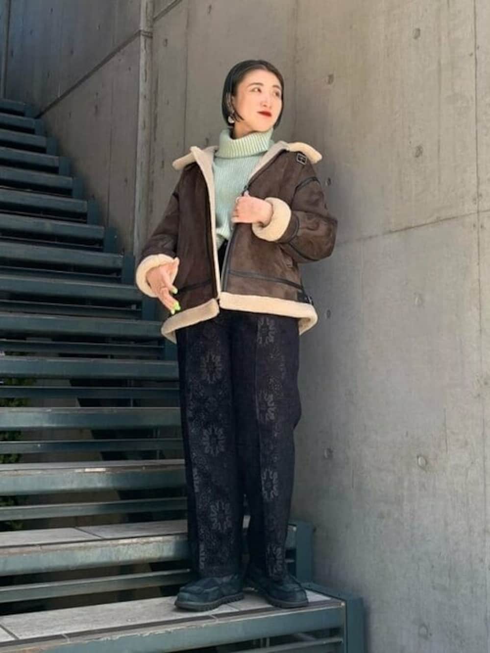 Ray BEAMS(BEAMS WOMEN)のブルゾン「Ray BEAMS / フェイクムートン ボマー ブルゾン」を使ったコーディネート