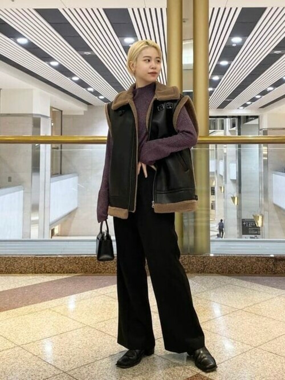 【ベストはマスト(°▽°)】今季はベストがトレンドですよね!自分なりのレイヤードを楽しめるのがベストの良いところ!<Ray BEAMS>のフェイクムートンボマーベストは肩から腕にかけて華奢見えさせてくれる女性の味方です!マストチェック!