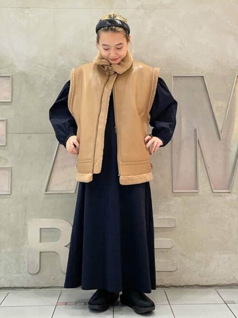 ボマーベストはサイズ感がおっきめで、とってもかわいいです♡わたしは上品に見えるbeige推しです〜!真っ黒で大人っぽくです!