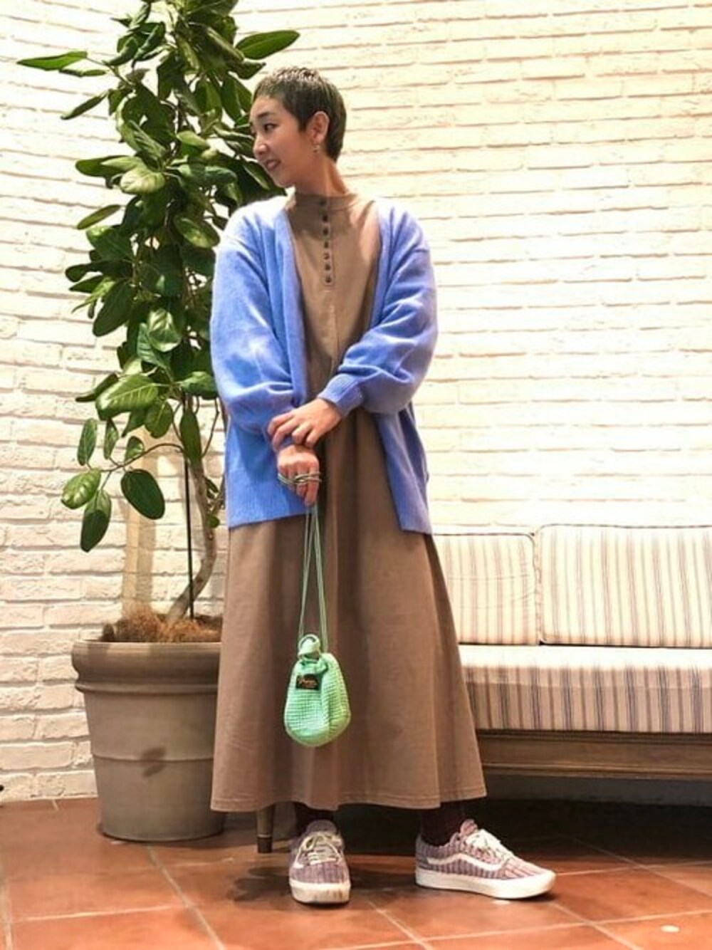 毎年大人気!! 〈Ray BEAMS〉のフラッフィーシリーズが入荷しました。 今年の色味も可愛い!! 今日はブルーを着てみました♪ 〈Napron〉×〈BEAMS BOY〉の小さなバッグとパステルトーンで合わせて。