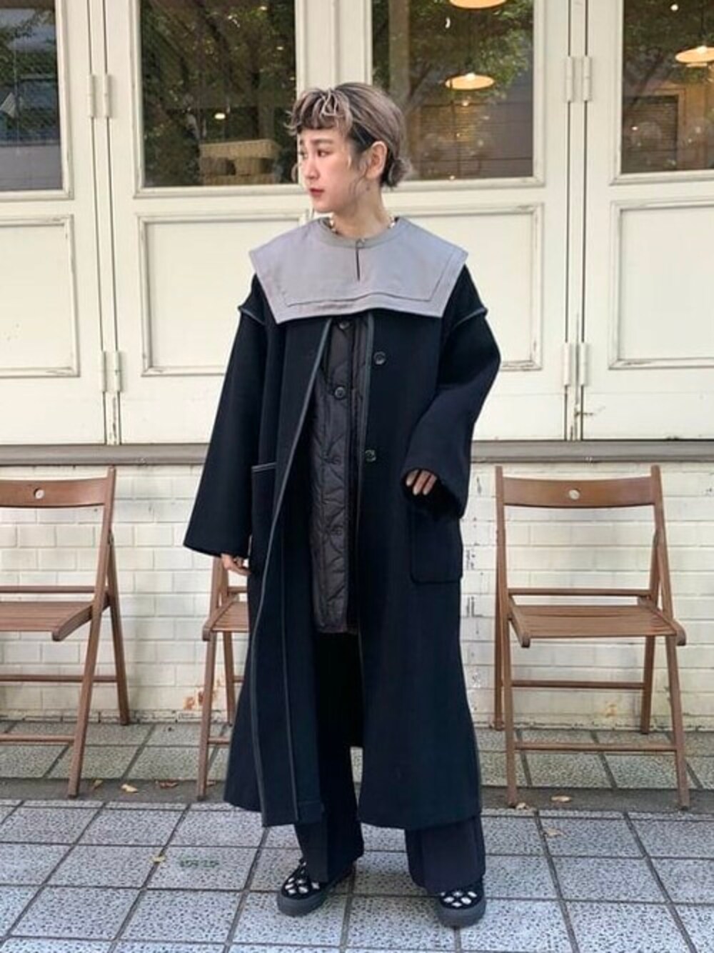 Ray BEAMS(BEAMS WOMEN)のノーカラーコート「Ray BEAMS / ライナー付き パイピング コート」を使ったコーディネート