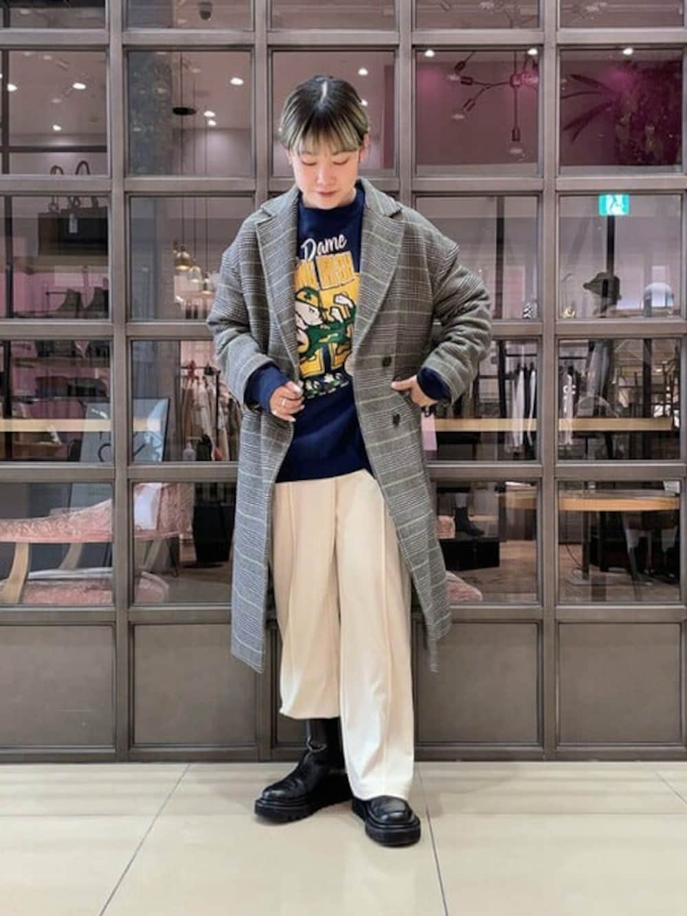 Ray BEAMS(BEAMS WOMEN)のチェスターコート「Ray BEAMS / チェック ダブル チェスター コート」を使ったコーディネート