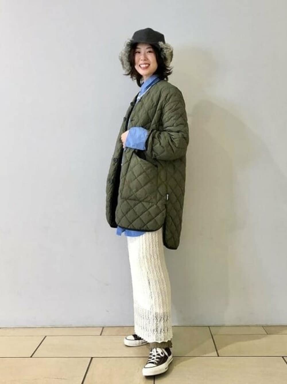 【本日から対象アウターが10%OFF💛】サイドのラウンドスリットと着丈の前後差にご注目です!( ⚆ ⚆ )°⌖꙳✧˖°マットな質感とシンプルな形が大人っぽくて好みです。キュートさも魅力なフライトキャップと合わせてスタイリングしました。
