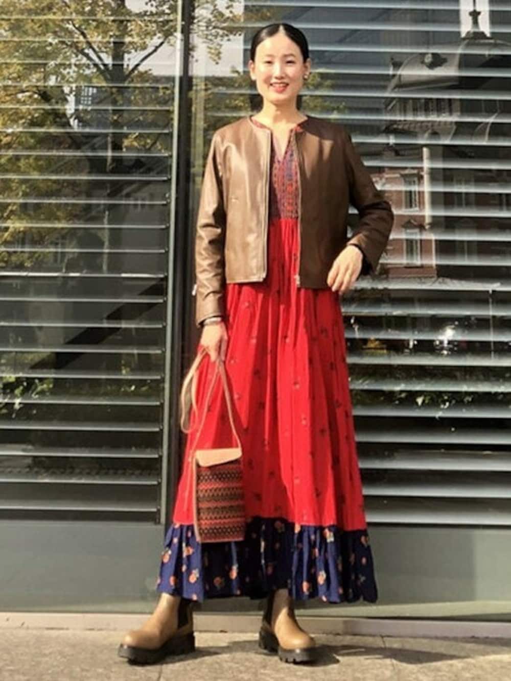 【対象のアウターが10%オフ💛】紅葉を見に行く時は、レザージャケットとダウンジャケットでしっかり防寒対策をします!今日はお気に入りのワンピースに合わせてボヘミアンな雰囲気のバッグを選びました。