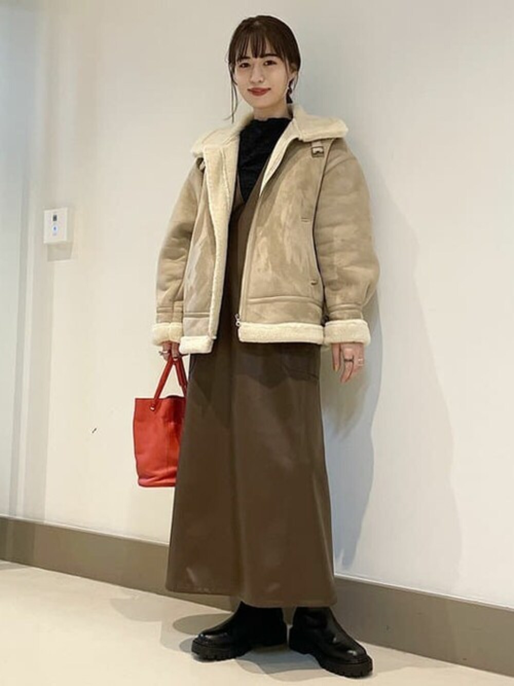 Ray BEAMS(BEAMS WOMEN)のブルゾン「Ray BEAMS / フェイクムートン ボマー ブルゾン」を使ったコーディネート