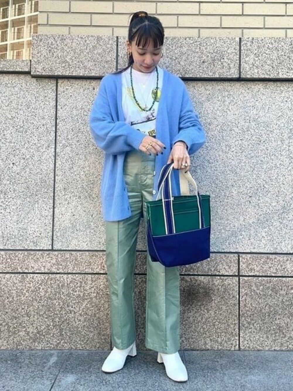 寒色系でまとめてみました!色×色の組み合わせが好きです。カットソーはインして、バランスをとりました!私はなんでもかんでもインしがちです、、、笑