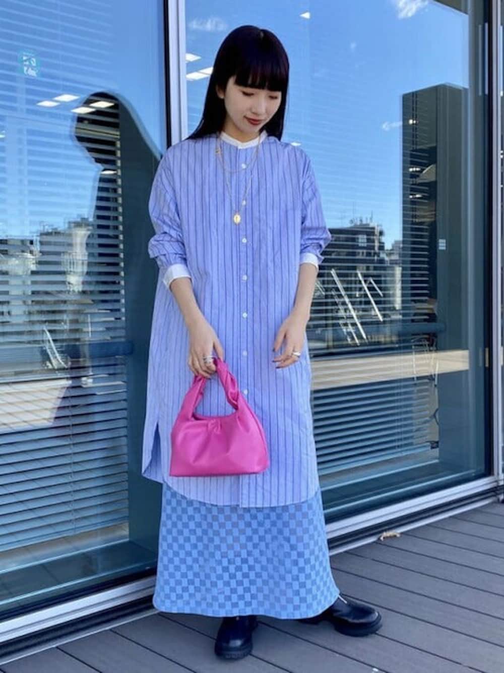 【ご予約承り中】柄と柄合わせです!シャツワンピースの下にチュール素材のチェッカーワンピースを着てます◎