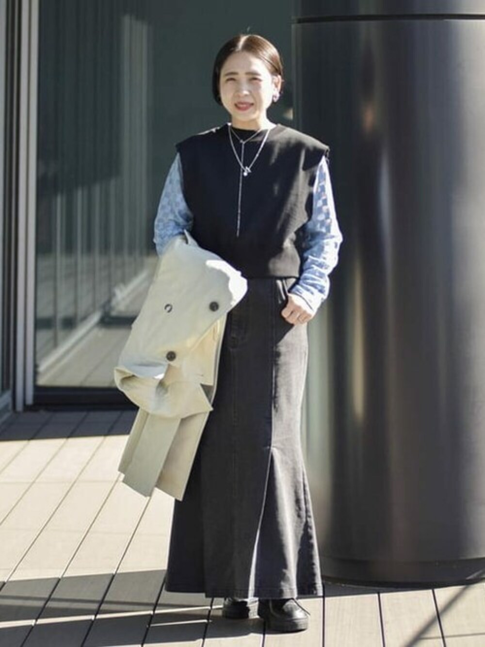 Ray BEAMS(BEAMS WOMEN)のデニムスカート「Ray BEAMS / ブラック デニム マーメイド スカート」を使ったコーディネート