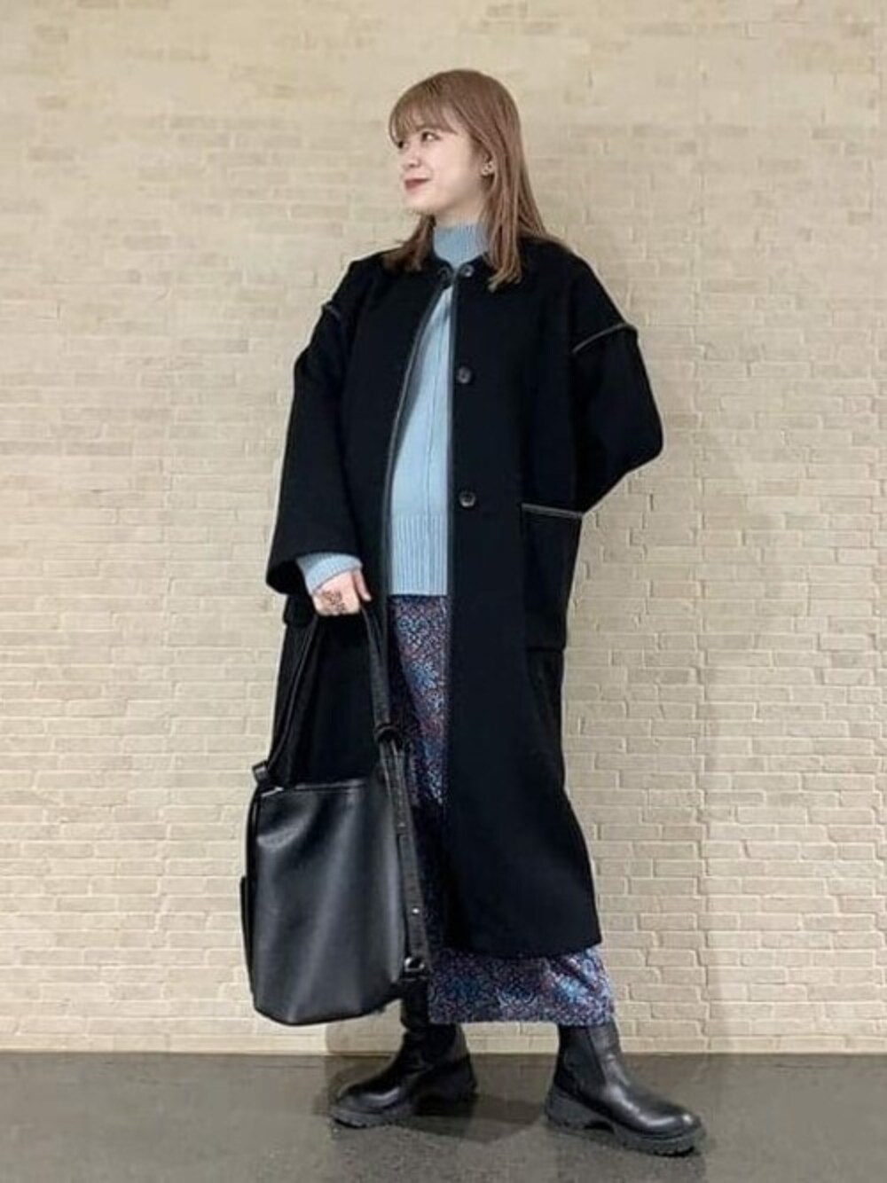 【2トーンで!】今日はブルー×ブラックで合わせました!いつも暗い色のアウターが多いのですが、中に明るい色のお洋服を着ると映えますし、少し雰囲気も変わって見えます!!冬だからこそのおすすめコーディネートです!