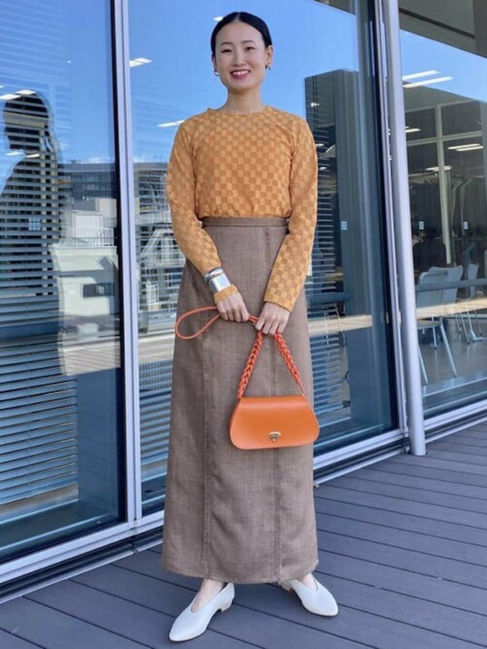 【予約受付中♡】22SSはチェッカーボードがオススメ!フリンジ使いが大人な印象のロングスカートを合わせてシンプルに仕上げました。