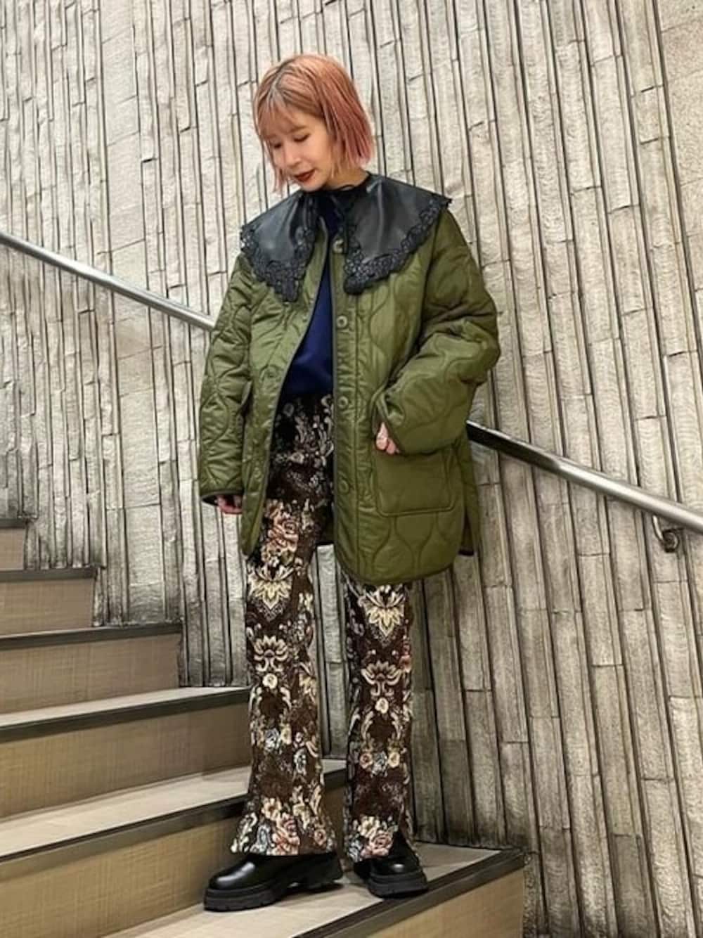 <Ray BEAMS>の大人気アウター、キルティングブルゾンに、本日はフェイクレザーの付け襟を合わせて雰囲気を変えてみました♩<PENNY’S>のスウェットは、バックオープンのデザインなので、インナーをチラッと覗かせるのがかわいいです☺︎付け襟はスウェットに合わせても可愛いですよ〜◎