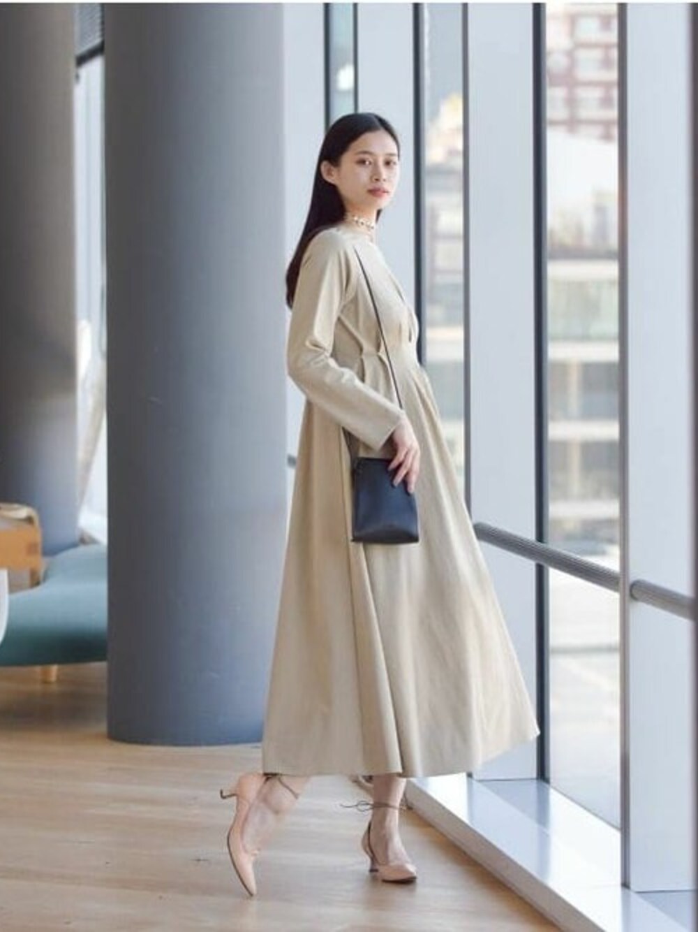 【RBS22SS】ハリ感を感じる見た目ですが、サラッと1枚で着用できます。程良くストレッチ感もあり、着心地がとても良いです!!バックスタイルもリー魅力的でポイントです♪手洗いできるのも嬉しい〜!!1枚で華やかなので是非お勧めしたいワンピースです!!