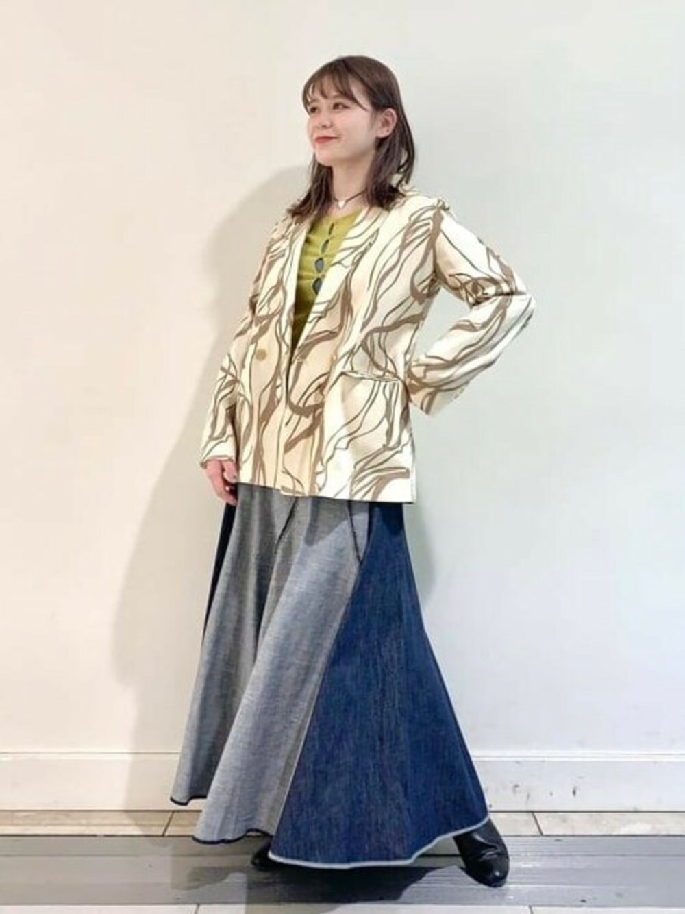 今日はエッジの効いた柄々のジャケットを着てみました!シンプルなジャケットに飽きた方、いかがでしょう?☺︎間違いなくコーディネートの主役になります!!色はおちついたベージュ、ブラウンの茶系なのでインナーには黄色を忍ばせました。