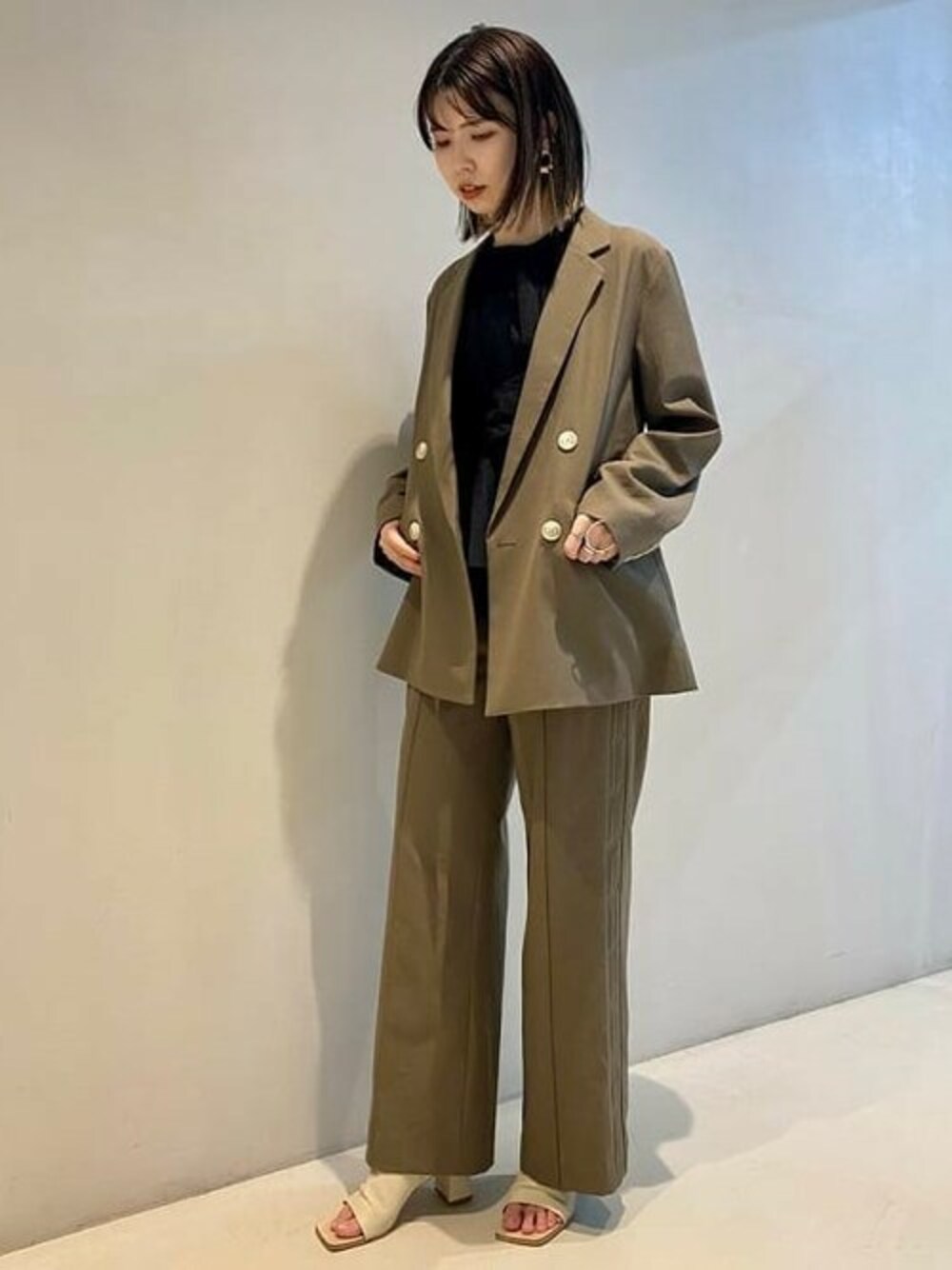 セットアップってやっぱり気持ちがしゃんとしますね!ジャケットもパンツも生地が柔らかいので、かっちりしすぎなところが◎シルバーアクセをプラスしたのもポイントです!