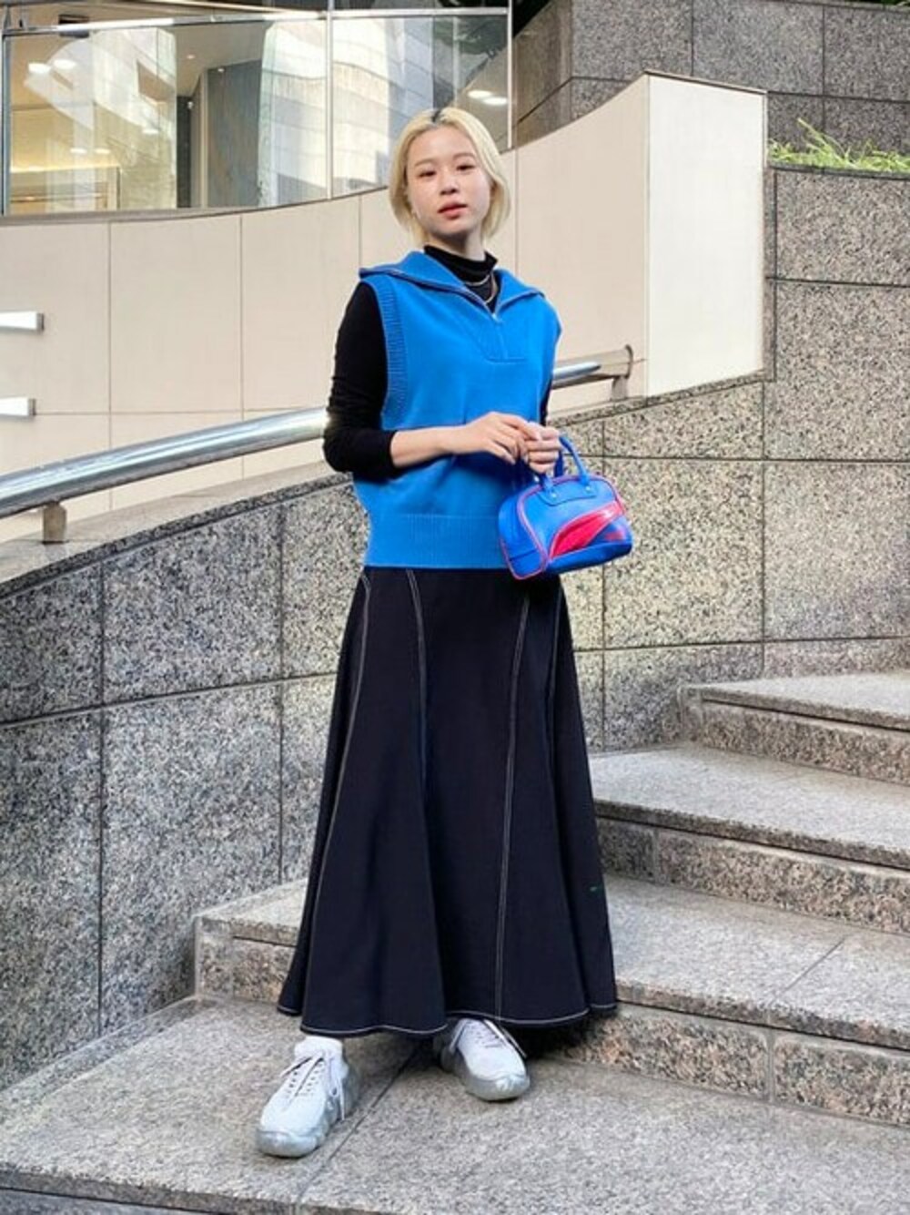大好きなブルーでスタイリング!ハーフジップベストは着回しが効くし暖かくなったら半袖の白Tを合わせたい!お気に入りのアイテム! ビームス 池袋 / ハルヒ