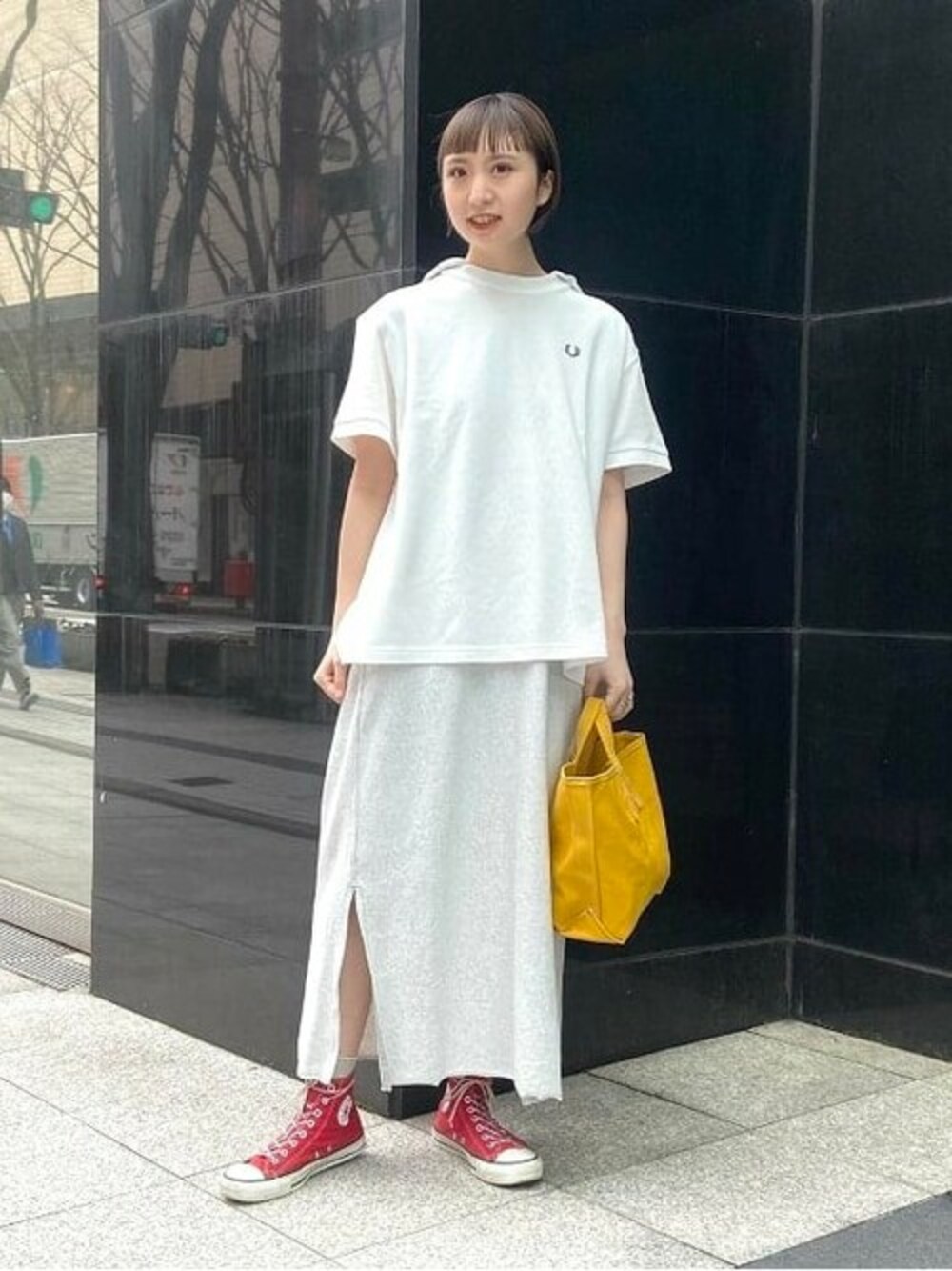 <Champion>別注アイテムのノースリーブワンピースに< FRED PERRY >別注オーバーTシャツ。スペシャルなアイテム尽くしのコーディネートです!ワンピースは深いスリットが両サイドに入っているのでパンツと合わせても◎ 春のお出かけスタイルにおすすめです! ビームス 金沢 / 松岡 美祐