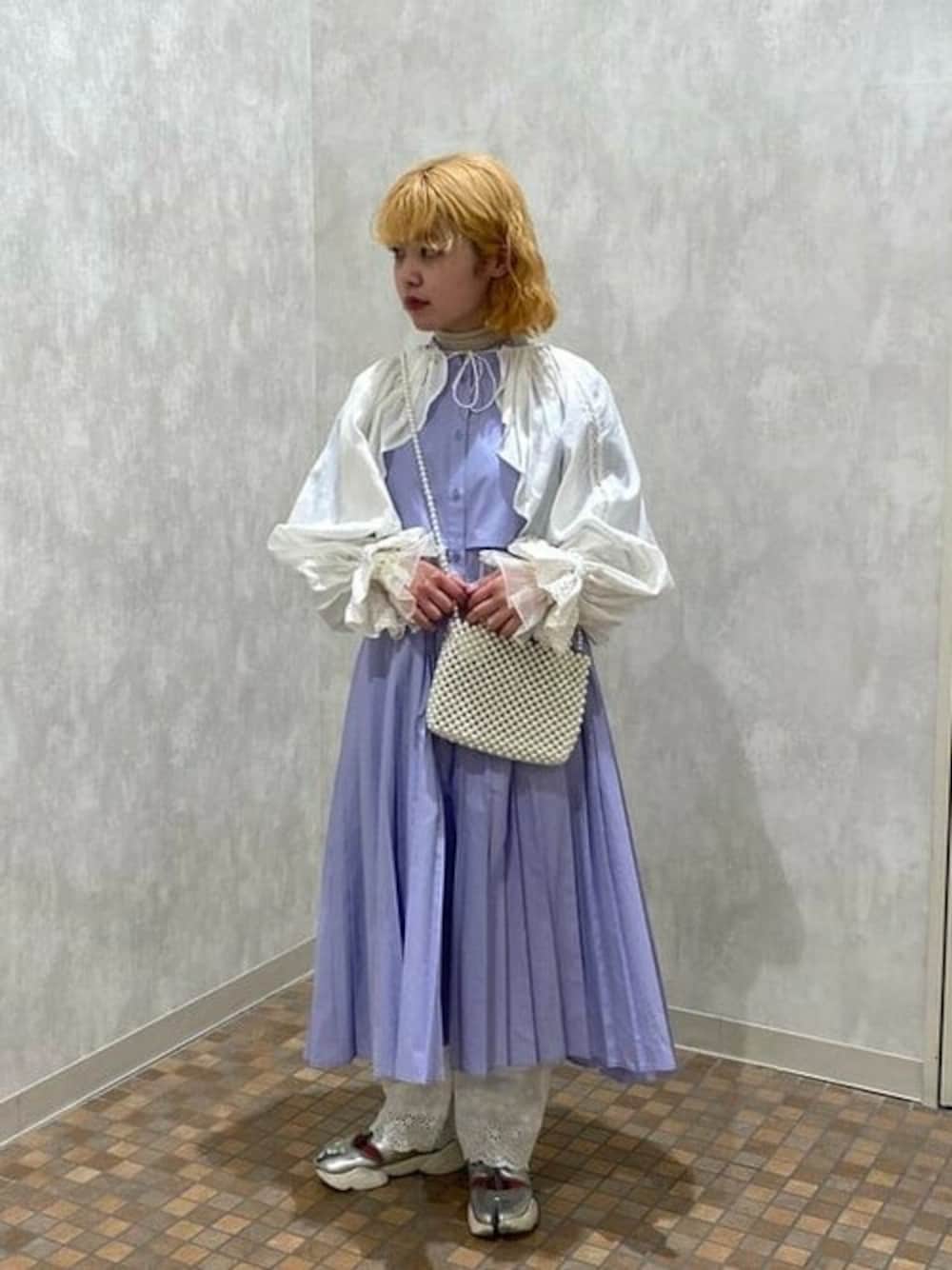 たまには甘さ全開で〜コットンレースとラベンダー色で春意識です!ワンピースは半袖なのですが、合わせ方次第でシーズンレスに着れそうです! ビームス 池袋 / ムラカミ ヒナ