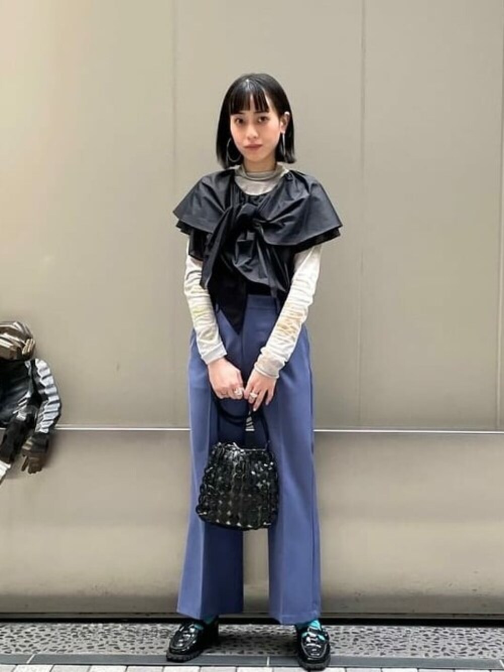 RBSのトップスがお気に入りです。大きな襟の様な首元は結んで着るのがオススメです!使いやすいブラックなので、合わせるものに困らず、また、一枚でサマになるアイテムです! ビームス 銀座 / えみり
