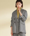 Ray BEAMS(BEAMS WOMEN)のテーラードジャケット「Ray BEAMS / チェック 4ボタン ダブルジャケット」を使ったコーディネート