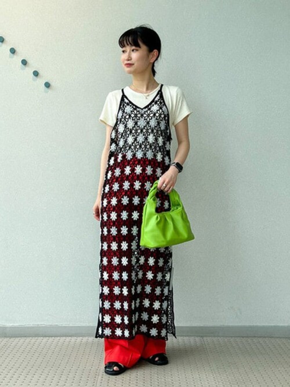 キャミソールワンピースを主役にしたスタイリングです! 夏らしい素材でなんでも合わせることができる万能アイテムです◎ 下の〈♡+〉を押しておくと、後で見返しやすくなりますよ! ビームス 名古屋 / 石嶌 笙鼓
