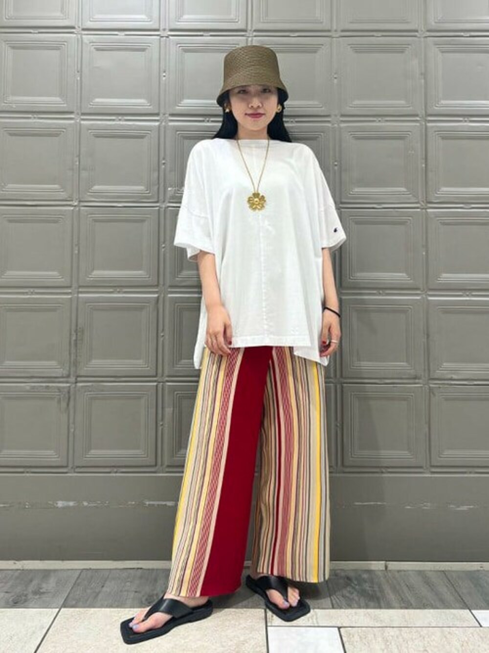 ビッグすぎるシルエットが可愛い♡だけじゃない〜!後ろを振り返ればチラッと肌見せできちゃいます!センターシームなのでプリントがなくてものっぺりしないのが◎ ちなみに透け感はそんなにありません! エッジの効いたアイテムとカジュアルな<champion>を合わせて、取り入れやすいスタイリングにしてみました!パンツは<77circa>です ビームス 横浜東口 / ゴメス