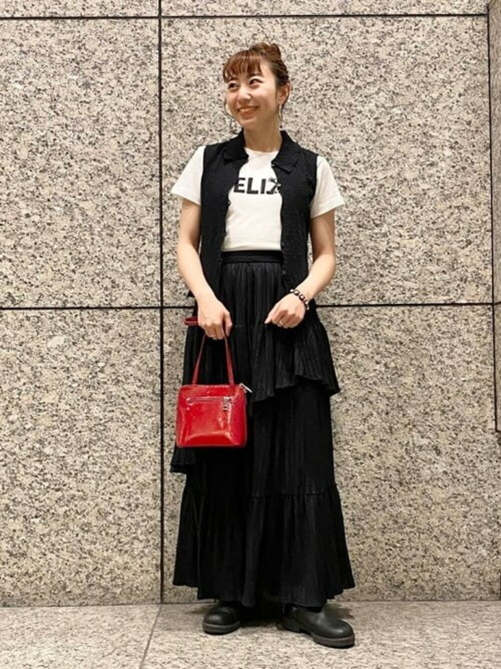 【気になるシャツ開けて着用!】 ボタンとボタンの間が開いていて可愛い〈Ray BEAMS〉のノースリーブシャツですが、あえて開けて中のTシャツを見せました☺︎ パッと映える赤いバッグもお気に入りです♡ お洋服の色を統一して小物だけ鮮やかな色のものを合わせるとおしゃれに見えますよ〜!! スタイリングの参考に〈♡+〉お気に入りで見返すことができます☺︎ Felix the Cat TM & ©︎DWA LLC ビームス 銀座 / 庭野 優紀