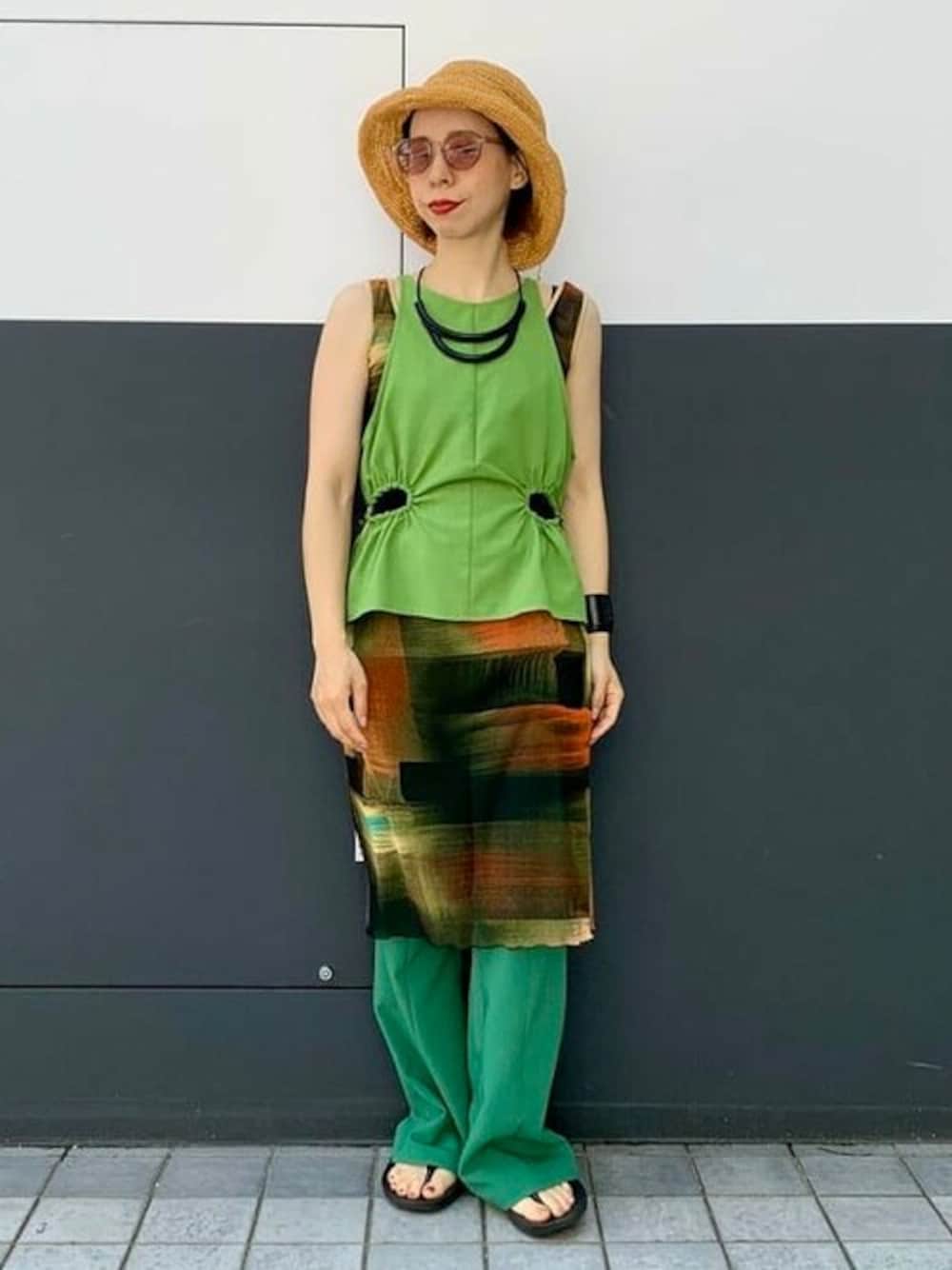 サイドホールがポイントになってくれるキャミソールが、ウエストのギャザーでペプラムのようなシルエットになります。 ワンピースの上にレイヤードしてみました! シックに大人めなBROWNも良いですが、今年はGREENに惹かれている私です。 ビームス 広島 / 上山