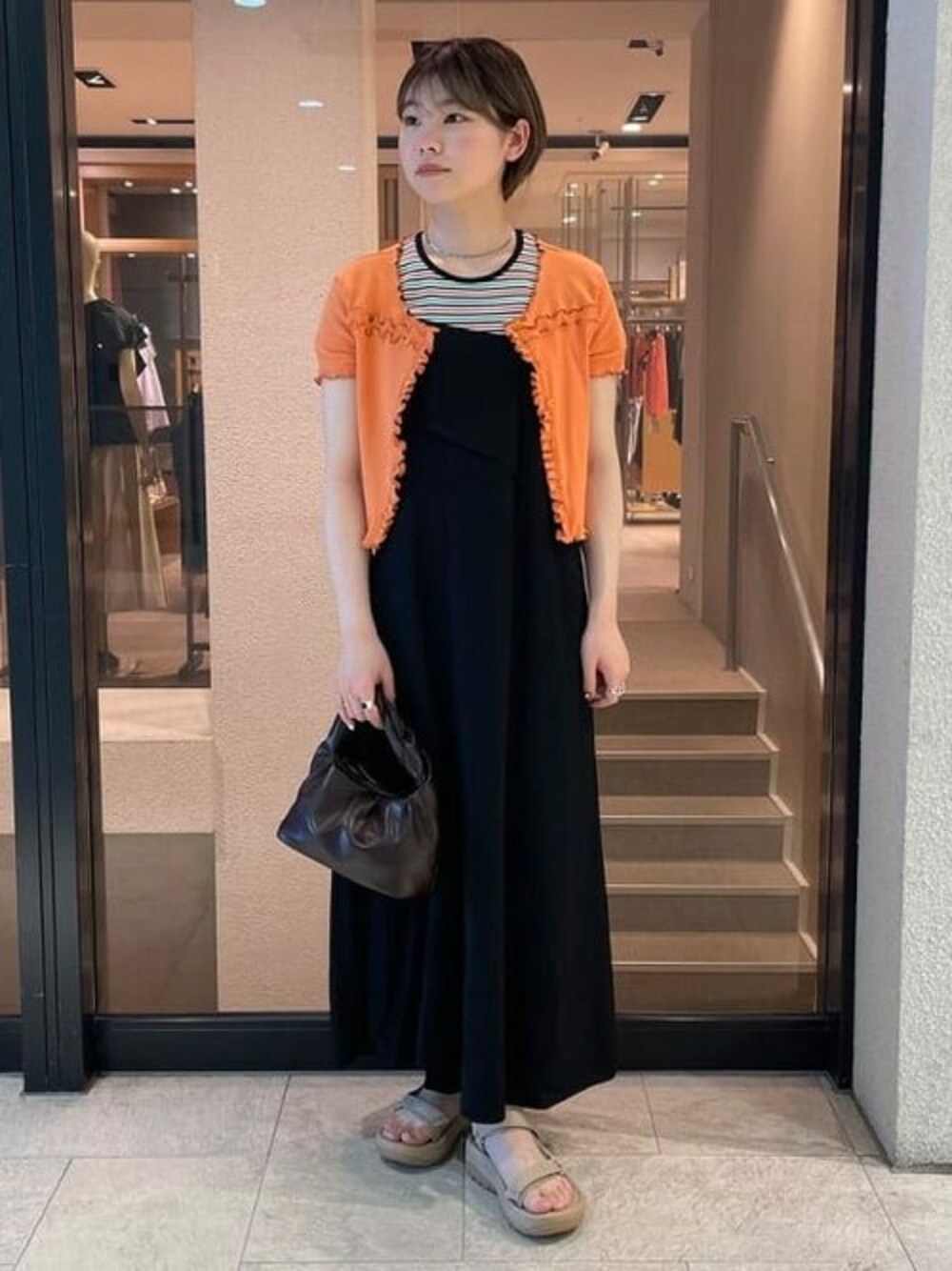胸元部分がアシンメトリーなデザインになっているキャミワンピースを中心に、ポップなカラーのアイテムを合わせ、夏らしいスタイリングにしてみました♪ ワンピースにショート丈のカーディガンを合わせてあげるとバランスが良いですよ〜☺︎ ビームス 高松 / 吉川 樹里