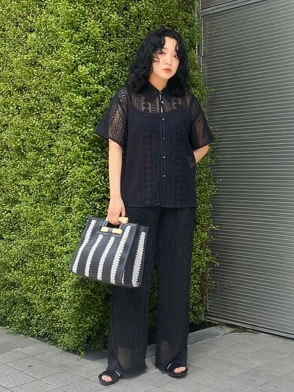 黒でも涼しげな素材を集めてスタイリングを組みました〜 トップスはレースになっていて通気性はバッチリです!パンツはシアー素材でウエストもゴムになっているので履きやすいです◎ 私は綺麗めにまとめてみましたが、どちらのアイテムもカジュアルに着こなせるので着回しが利くところも◎ ビームス 静岡 / 足立 恋