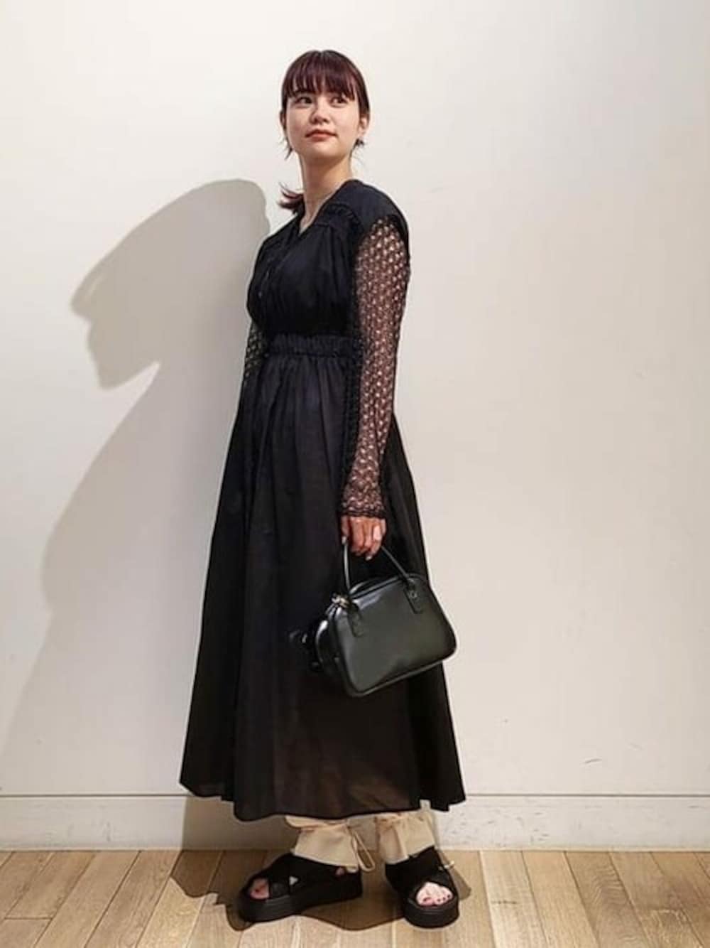 【モノトーンで大人っぽく】これからの暑くなる季節は、一枚でさらっと着られるワンピースが重宝しますよね…!着用している<Ray BEAMS>のワンピースは、前が全てボタンなので開けて羽織としても着て頂けます。身長160cmで脛当たりの裾丈なので、下にパンツをレイヤードしても◎ウエストのギャザー部分はゴム仕様。楽なのにスタイル良く見せてくれます!なによりポケットが付いているのが嬉しいポイントです。気になる方は、試着申し込みにてご希望の店舗でスムーズにご覧頂けますので、是非チェックしてみてください! ビームス 町田 / saori KATO