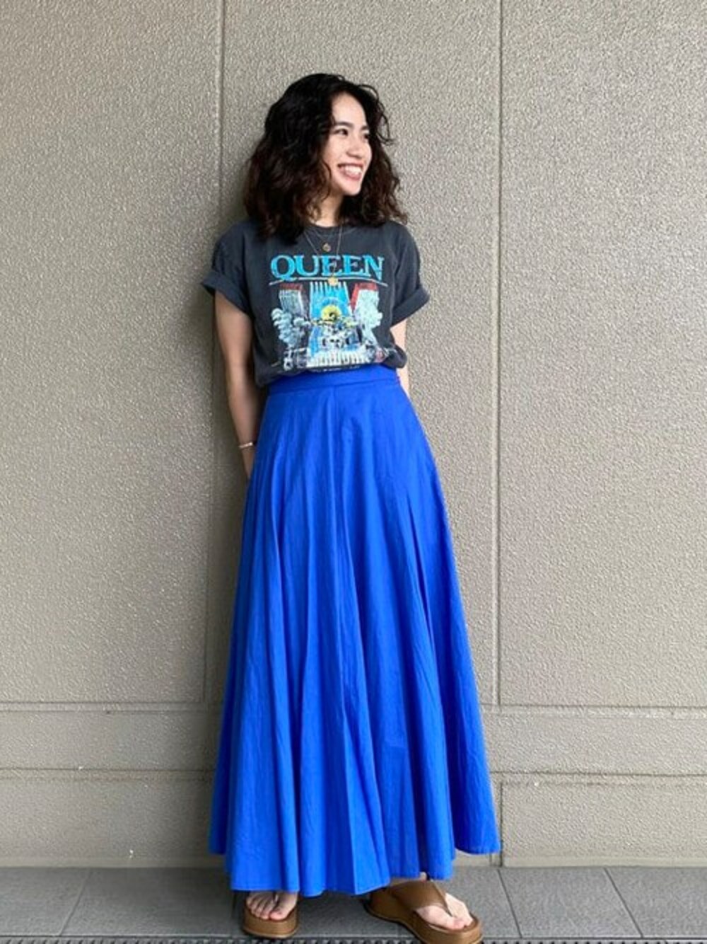 【湿気でどんより気分。ブルーな気持ち。】 梅雨に突入し、かなり湿度が高くジメ〜ェ〜としてますね。そんな時こそ!とカラーを選んだのですが手に取ったのはブルーでどこかどんより気分でした^ ^; ですが、こちらの<Ray BEAMS>オリジナルのコットンロングフレアスカートはとても涼しく着用頂けてこんな時期にオススメ!そして、フレアスカートで生地たっぷりなのにシルエット抜群なんです◎◎! 是非、店頭でご試着してみて下さい♪ 【オンラインショップの商品ページから試着申し込みをご利用頂けます。是非、お気軽にお申し込み下さい!】【♡+でお気に入り登録すると後から見返しやすいです◎フォローもお待ちしてます!】 ビームス 梅田 / CHISATO