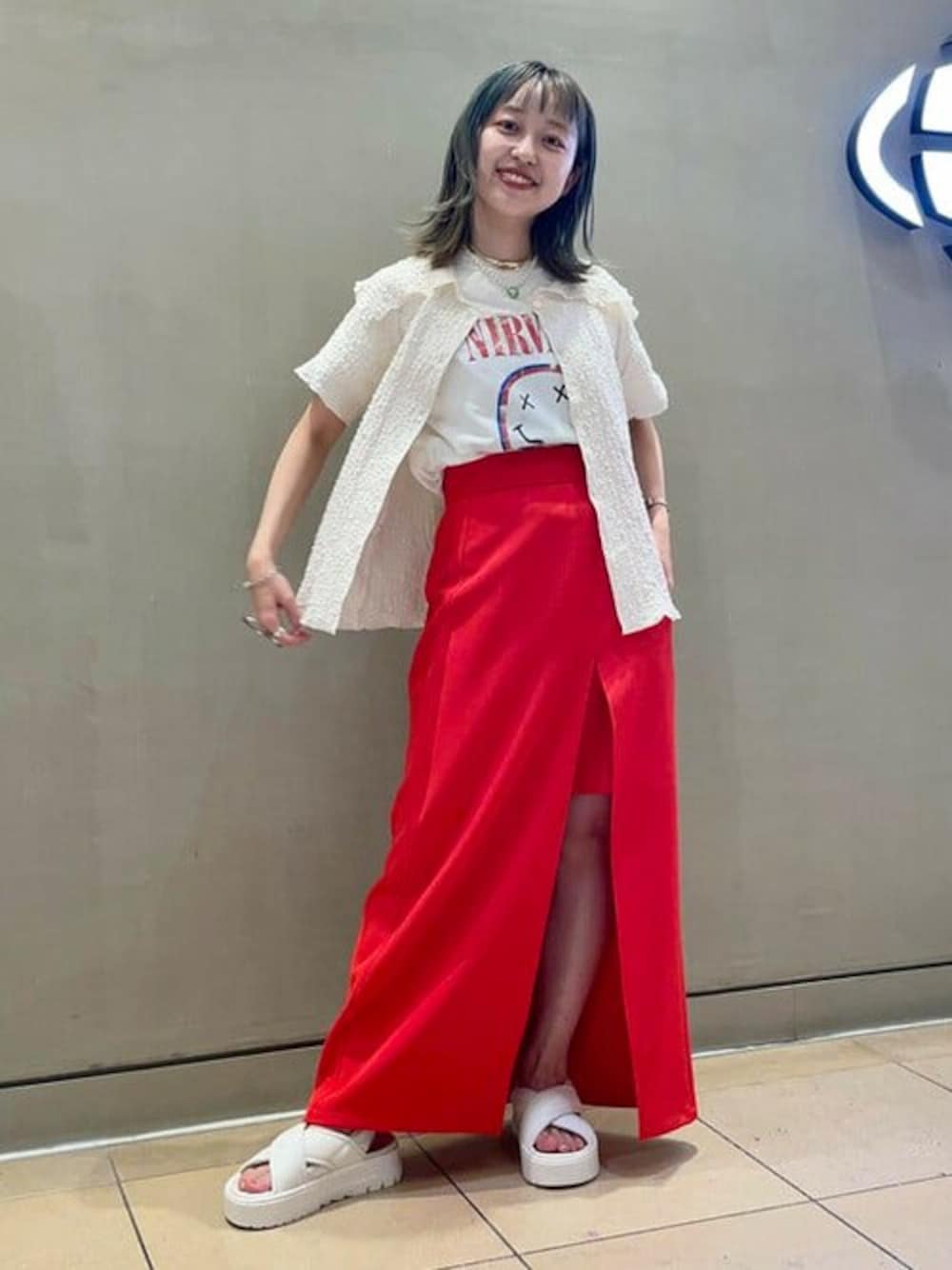 【私普段はほとんどスカート履かないんですが!】履いてみました!♡ これなら低身長の私でもバランスを気にせず履けそうです。 幼くならないように、、パキッとした色合わせを意識したらなんだか紅白でめでたくなりました!!インナーのTシャツと、スポーツサンダルでカジュアルになるようスタイリングしましたよ〜!《気になるアイテムやスタイリングは♡+でお気に入り保存すると後から見返せますよ◎。フォローして頂くと、タイムラインで最新の記事が見られます◎》(C)2022 NIRVANA, under license to Merch Traffic, LLC ビームス 天王寺 / カラツ ミナ