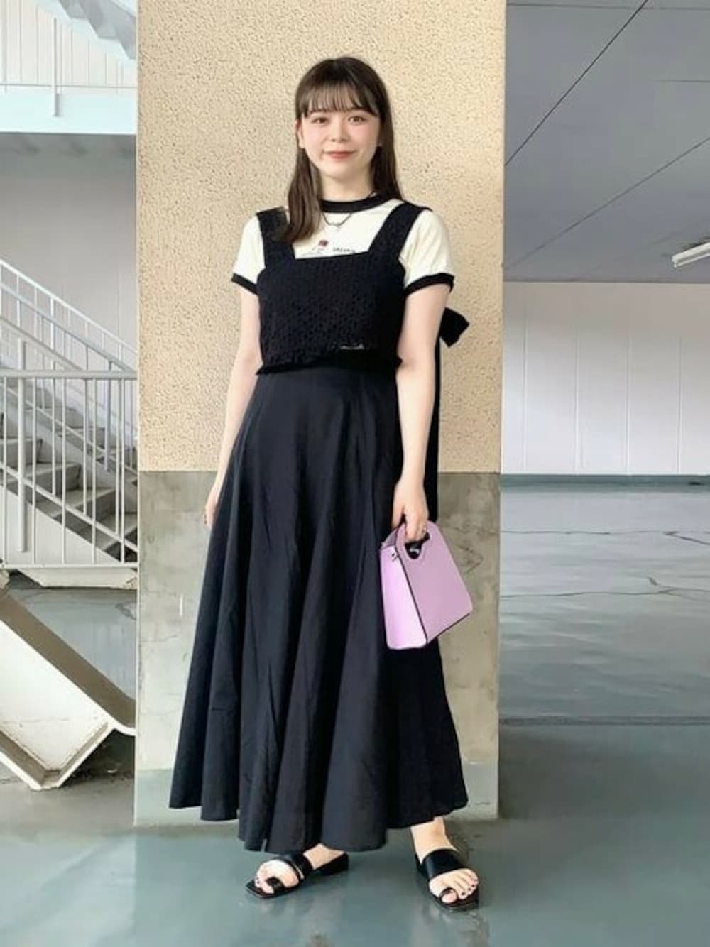お気に入りの<sister jane>に合わせて、モノトーンでコーディネートしました!夏でも黒は着たくなります♡素材の軽いスカートを合わせて、足元にも抜け感を。ワンポイントとしてパープルのバッグを合わせたのもポイントです! 【+♡】を押すと後で見返しやすくなりますので、ぜひお気に入り機能も使って下さい〜! ビームス 柏 / 田中 里実
