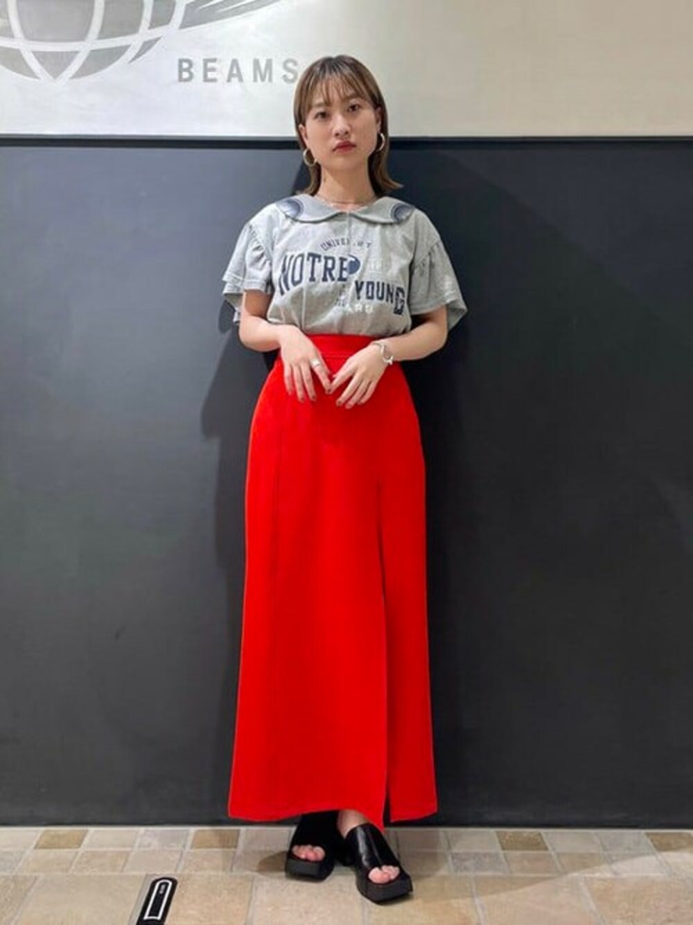 Ray BEAMS(BEAMS WOMEN)のスカート「Ray BEAMS / サイド スリット ロングスカート」を使ったコーディネート