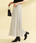 【フリルスリーブが可愛い♡】袖のフリルとマーメイドスカートの柄を活かすために、他はブラックのアイテムで統一!スカートの裾から足がほのかに透けるのもポイントです!〈PUMA〉のサンダルは軽くてクッション性があり、履き心地の良さに感動です! ビームス 新丸の内 / たて ふくみ