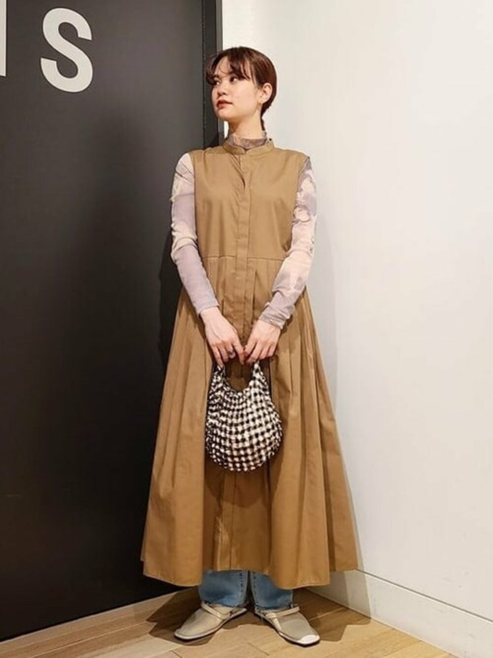 【シンプルで可愛い♡】<Ray BEAMS>のプリーツワンピース。町田でも大人気です!サイズは0と1の2サイズご用意しております。ウエスト部分はプリーツデザインですが裾にかけてフレアデザインになっているので、気兼ねなく座って頂けます◎長すぎず程よい丈感なので、パンツとレイヤードしてもGOOD。前を開けて羽織としてきてもGOODな着回し抜群ワンピースです!【high:160/size:1】 ビームス 町田 / saori KATO