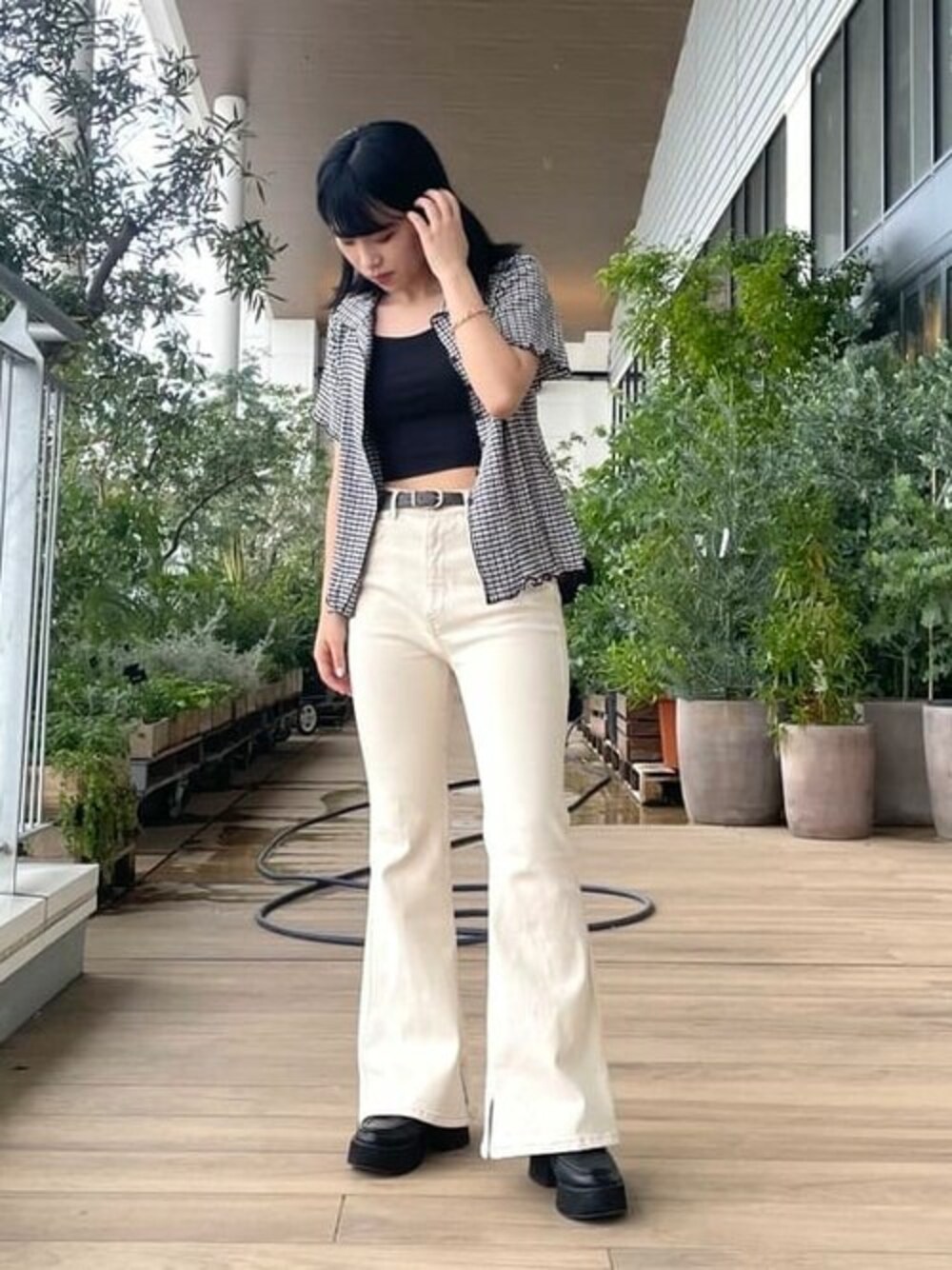 Ray BEAMS(BEAMS WOMEN)のシャツ/ブラウス「Ray BEAMS / シャーリング ギンガム シャツ」を使ったコーディネート