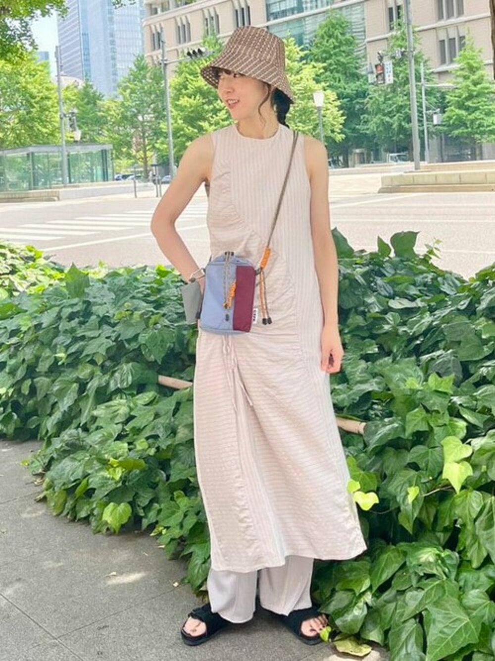 野外も室内もどっちも楽しもう!!!なトレンド感がありつつ、大人なリラックス感もあるそんなコーディネートにしてみました!派手な色を着るのもいいですが、最近はナチュラルなカラーなど落ち着いた色合わせが好きなのでメインはオフホワイトですが、シルバーのボトムスや小物をカラフルにしてアクセントを加えてみました。〜【♡+】ボタンでお気に入り登録お願いします〜 ビームス 新丸の内 / kigo