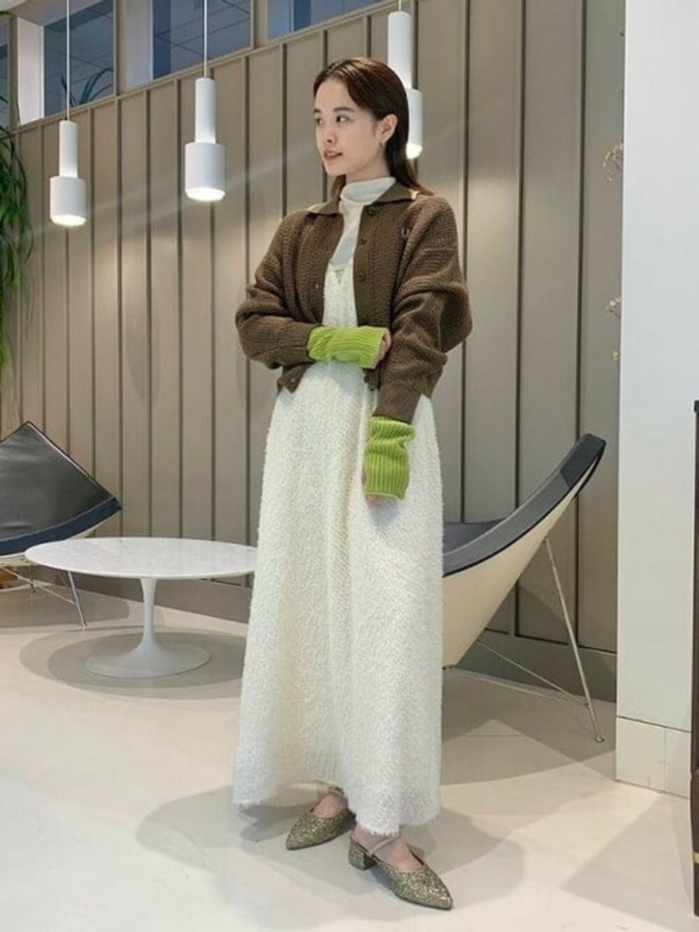 【ブラウンも着てみました〜♪】<FRED PERRY>のカーディガンをメインにスタイリング!やや着丈が短いので、ロングワンピースと合わせてもバランスが良いです!+♡押していただくとスタイリングをいつでも見返せます〜! Ray BEAMS / chieri