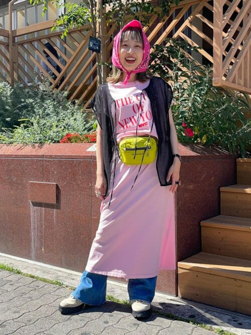 【フェスに行くなら】音楽フェスに行くなら、、可愛い格好したい!でもはしゃいで物を無くしたくないので装飾物は少なめがいい!そんなリアルなスタイリングです(笑)ウエストポーチでとめれば、マキシ丈のワンピースもイイ丈感に。派手ピンクのバンダナはお気に入りです^ - ^♪《♡+で保存して後から見返して下さいネ》©2022. City of New York. All rights reserved ビームス 天王寺 / カラツ ミナ