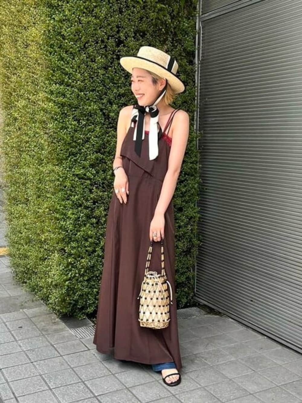 Ray BEAMSのキャミワンピース再入荷しました♡夏はサラッとキャミソールに重ねて夏らしく着こなしたいです!BAGMATIのウッドのバッグでさらに夏らしく。 ビームス 静岡 / 坂田 彩