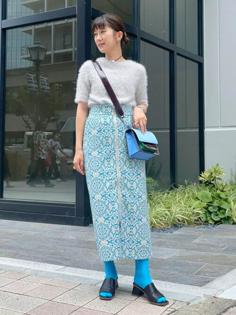 普段は暖色系を選ぶことが多いのですが今回は半袖のニットに合わせてブルーのカラーリングでスタイリングしました!スカートはジップがついているのでトップスをインして着ていただくのもオススメです♡【フォロー】して頂くと、タイムラインからスタイリング等すぐに見て頂けるのでぜひお試しください☺︎ ビームス 神戸 / 南井 菜摘